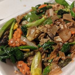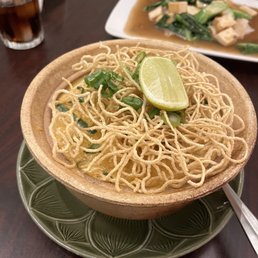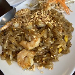Solid, tastes home-cooked dishes! The Tom yum soup was served first and the shrimp was cooked perfectly and hubby liked that it was piping hot. It was a little on the sweet side but the other flavors were comforting and hit the spot. We ordered the dishes medium spicy and we made a note that we will order them full spice next time. The pad Thai was good but, again, a tad too sweet for our taste buds. We also ordered Rama (broccoli) with beef enveloped in a satiny, glorious peanut sauce! This was a winner! The Thai fried rice with chicken tasted like the ones in Bangkok so also a winner! We asked for nam pla prik (fish sauce with minced Thai bird chilies) and it remedied the lack of heat and gave the dishes even more umami flavor. The place is very family-friendly and clean. We used to bring the kids here but we have not dropped by in a while. It's great to know that they are still open and serving good Thai cooking!